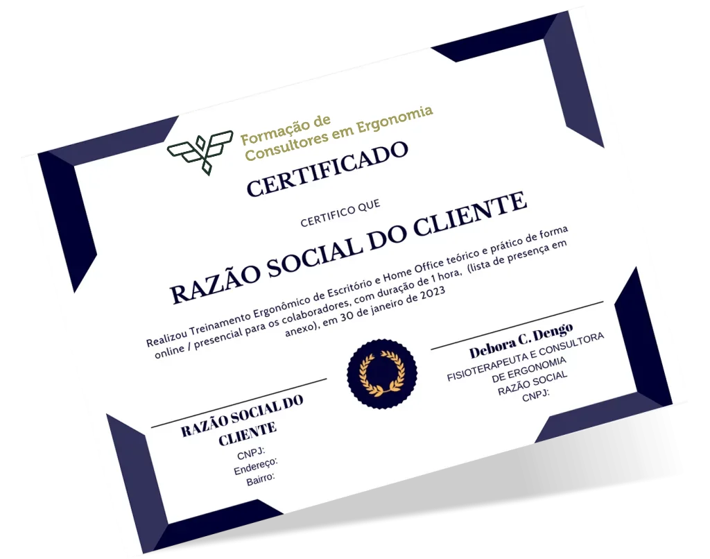 Os principais diferenciais são: primeiro, que é a única formação EAD do Brasil reconhecida pelo MEC. a Além disso, sua professora atua ativamente nas empresas com ergonomia há 8 anos, portanto te passará a prática do dia a dia e não apenas teoria como na maioria das capacitações. Ainda, por 12 meses você terá o acompanhou tirando dúvidas com a Debora Dengo, para te guiar no seu começo, aprenderá e receberá o modelo dos laudos das Debora em word editável para iniciar nas empresas já realizando uma análise ergonômica de alto nível. A didática de Debora Dengo é incomparável no mercado, pois em toda aula mostra exemplos práticos de análises reais feitas em empresas em vídeo, mostrando o passo a passo, é como se você estivesse dentro da empresa atuando junto com a Debora, pois enxergará dentro do curso o que os olhos dela enxergam através das centenas de vídeos e fotos de análises reais. como E pra fechar, aprenderá as técnicas mais atuais de prospecção, captação e fechamento com as empresas para entrar no mercado de trabalho rapidamente, sabendo quanto e como cobrar pelos serviços de ergonomia prestados. A Debora não esconde nada ou retém informação. 100% das estratégias de atração, captação e fechamento de clientes que ela aplica em sua empresa, na Soluções Ergonômicas, ela compartilha em detalhes com os alunos.